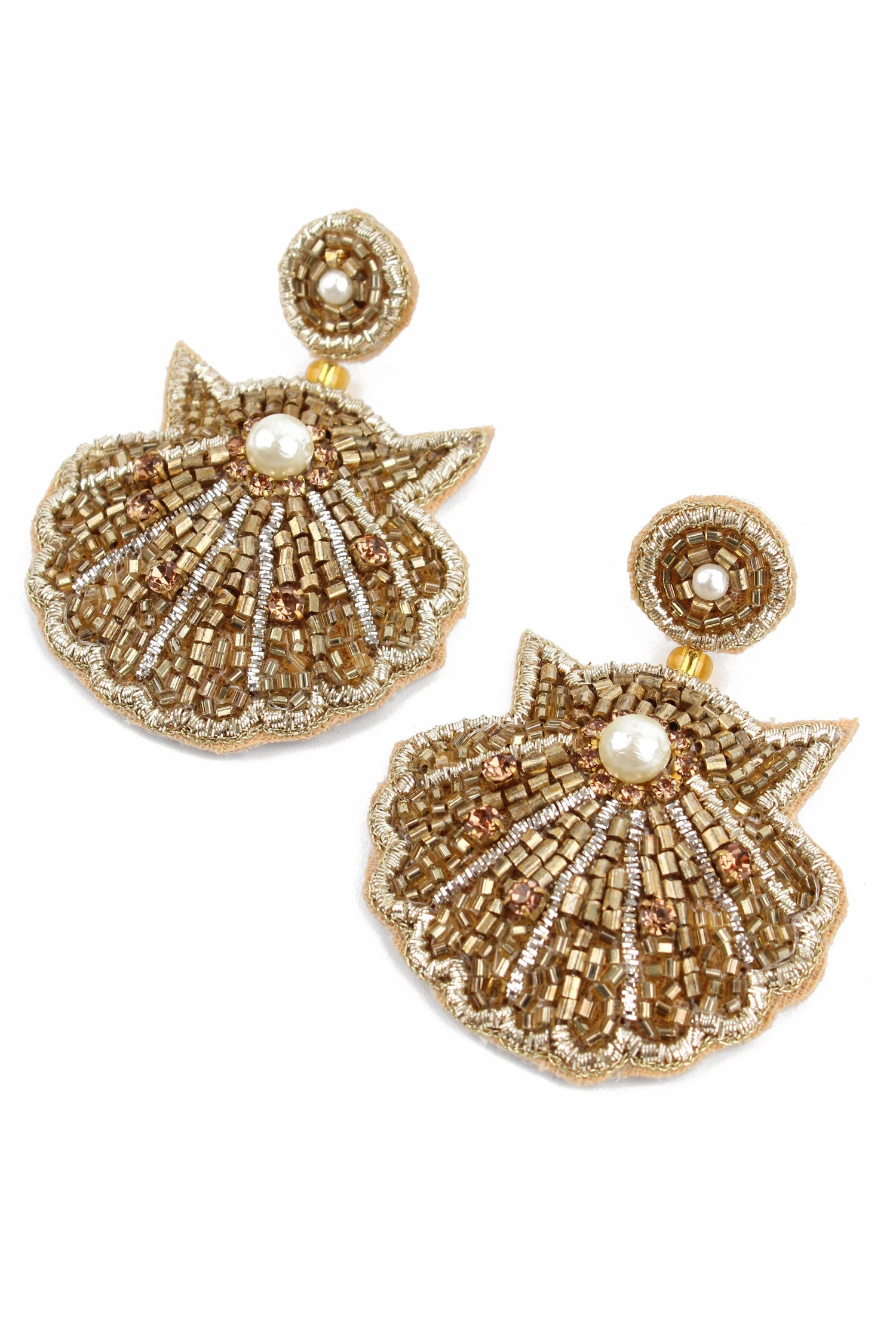 Stand-out shell earrings handmade using shimmering beads & sparkling gems.